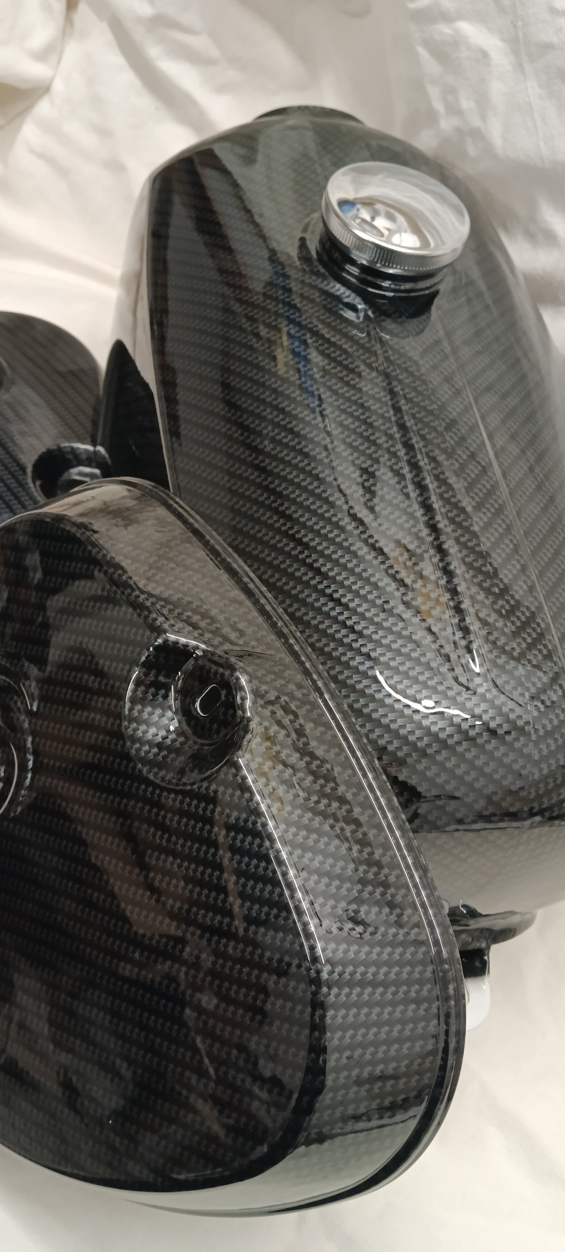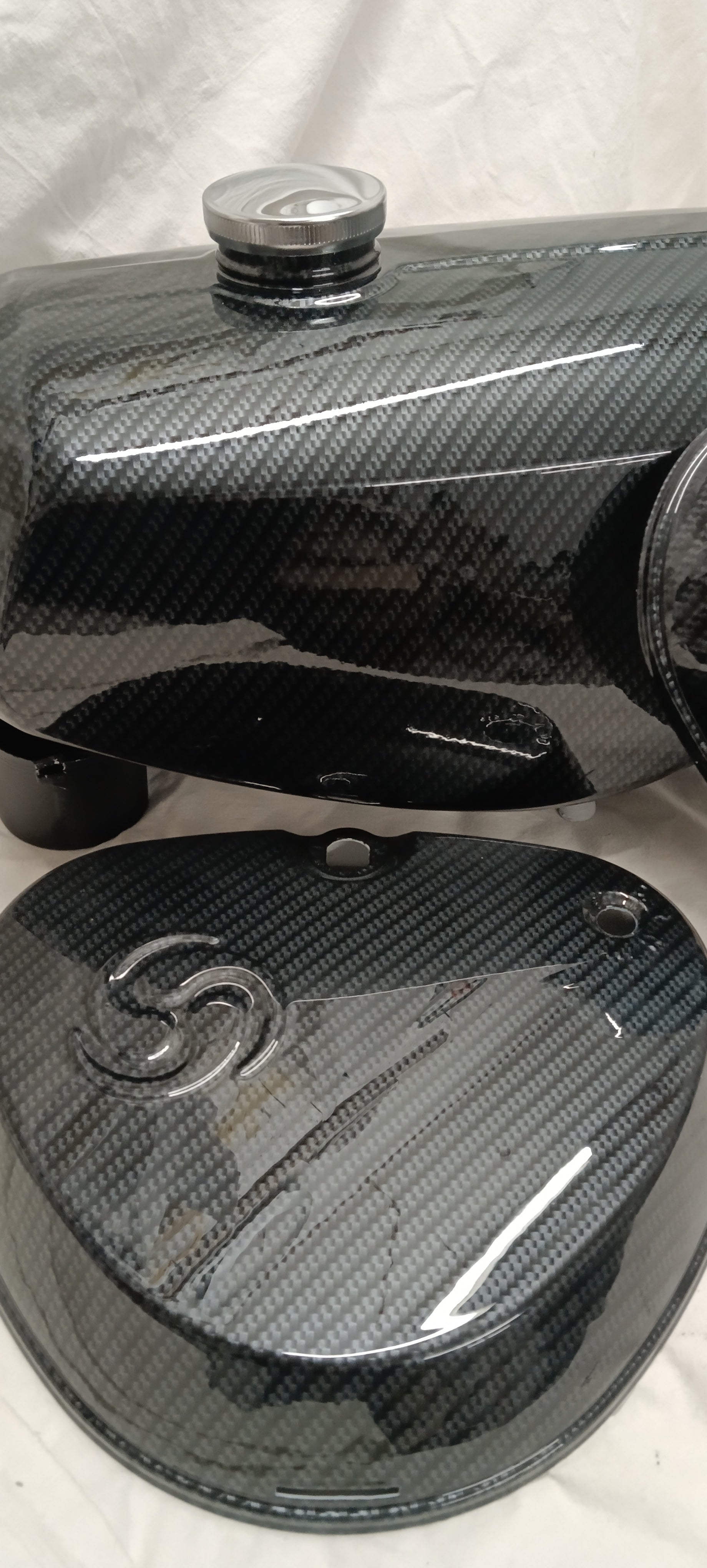 Simson Tanksett im Carbonoptik beschichtet und satt Klarlackiert, es gibt optional die Seitendeckel als Export oder Original runde version.