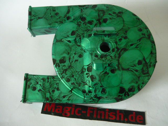 Simson Kettenkasten in grün metallic mit totenkopf beschichtet.und ordentlich Klarlack.