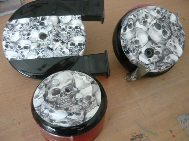 Simson Kotflügel Lampehüllen Kettenkasten Rücklicht Luftfilterkasten in Schwarz/Weißer Totenkopfoptik