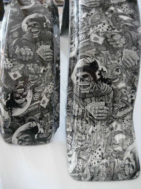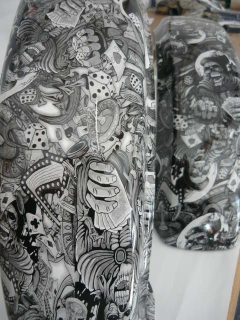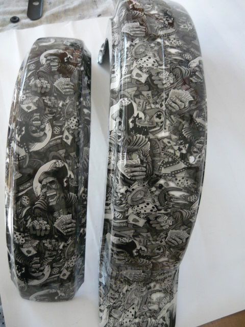 Simson Kotflügel Roller SR50 in Casino Totenkopfdesign beschichtet und Klarlackiert