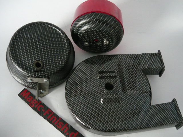 Simson Lampenhülle Kettenkasten im Set in Carbonoptik