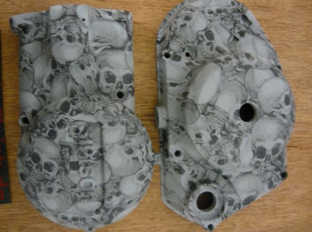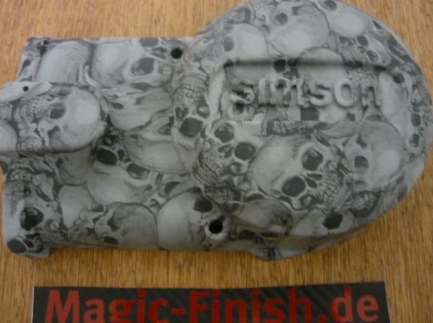 Simson Motorendeckel Kupplungsdeckel in Matt Weiß Totenkopfoptik
