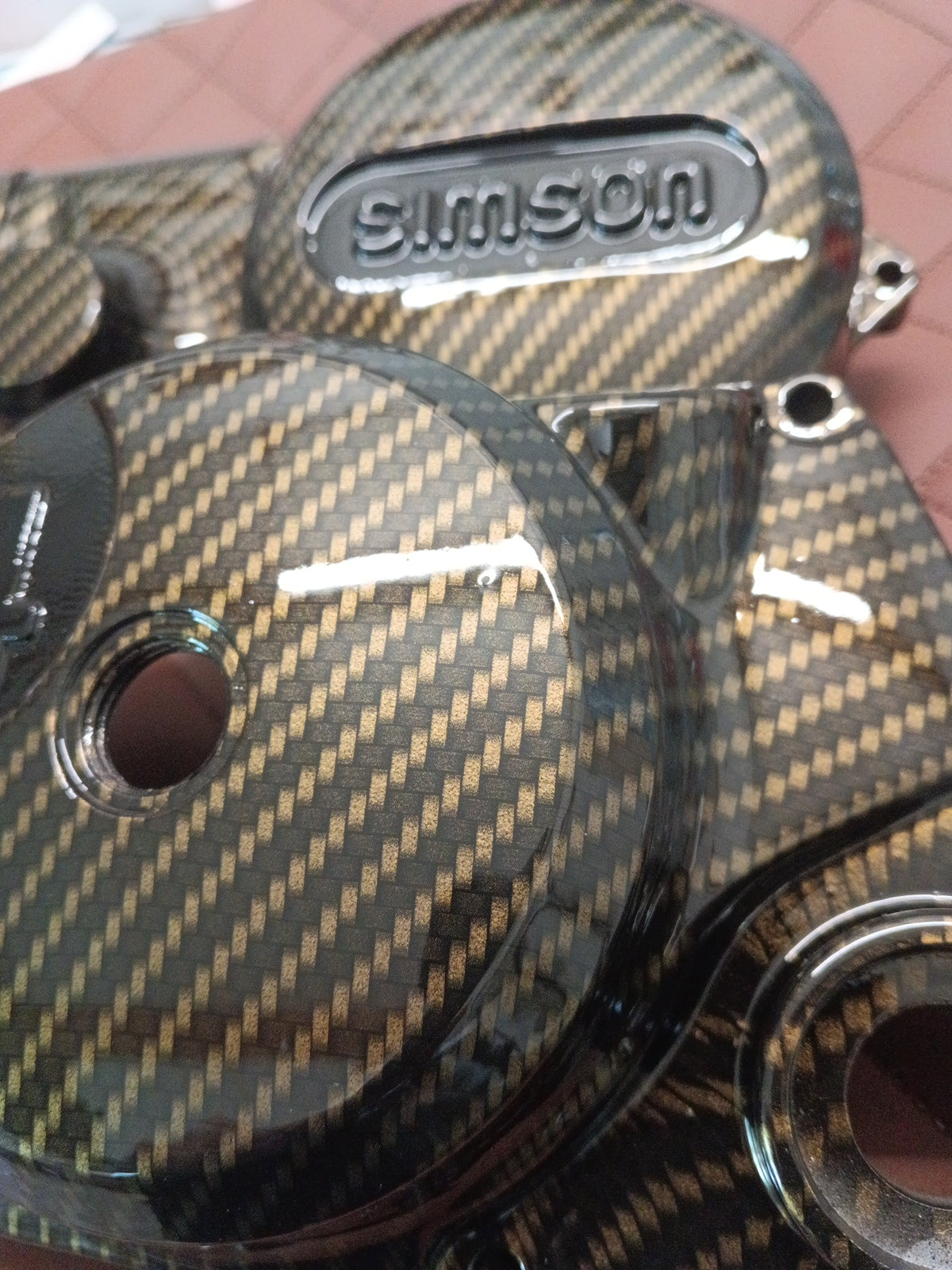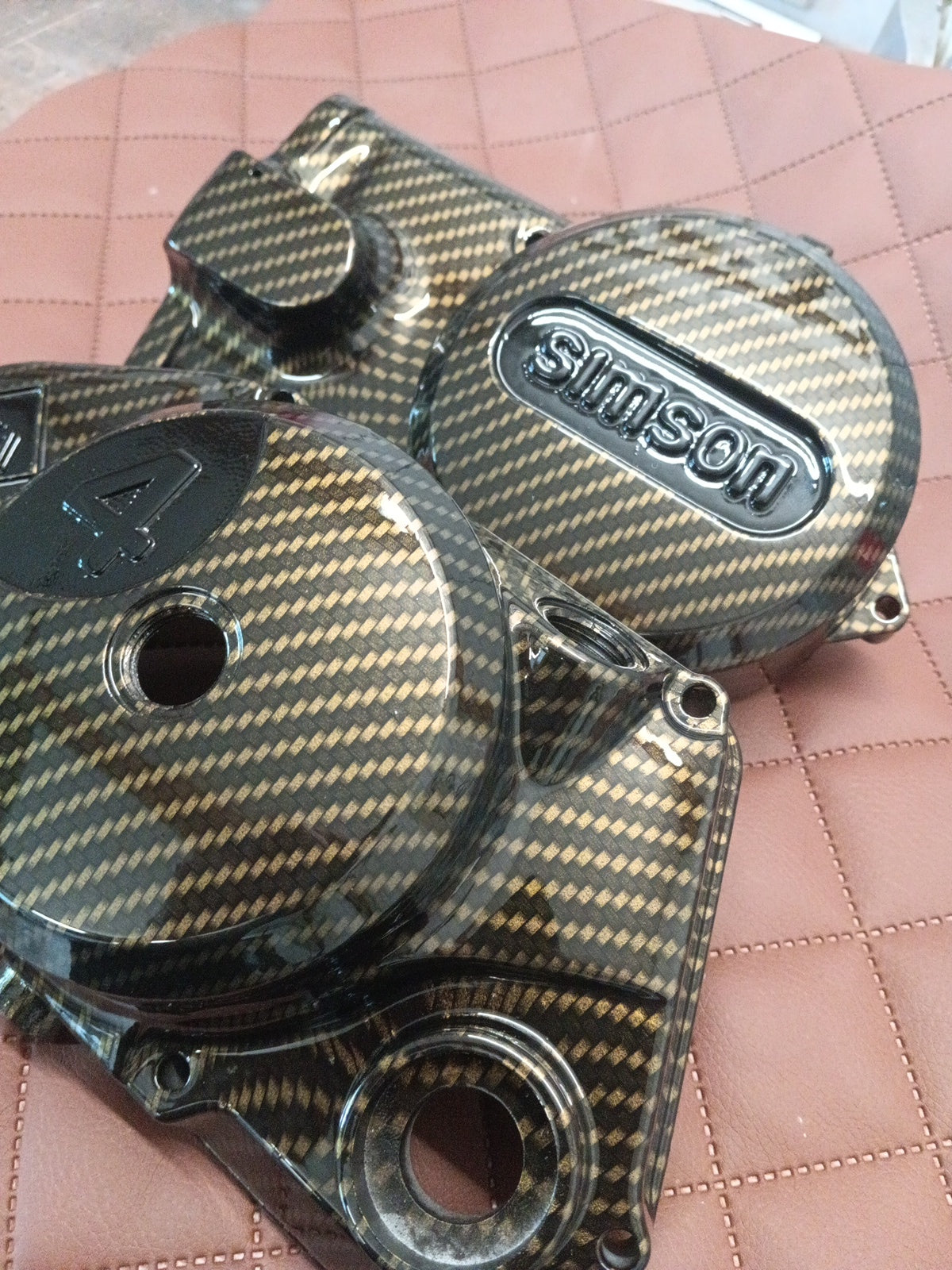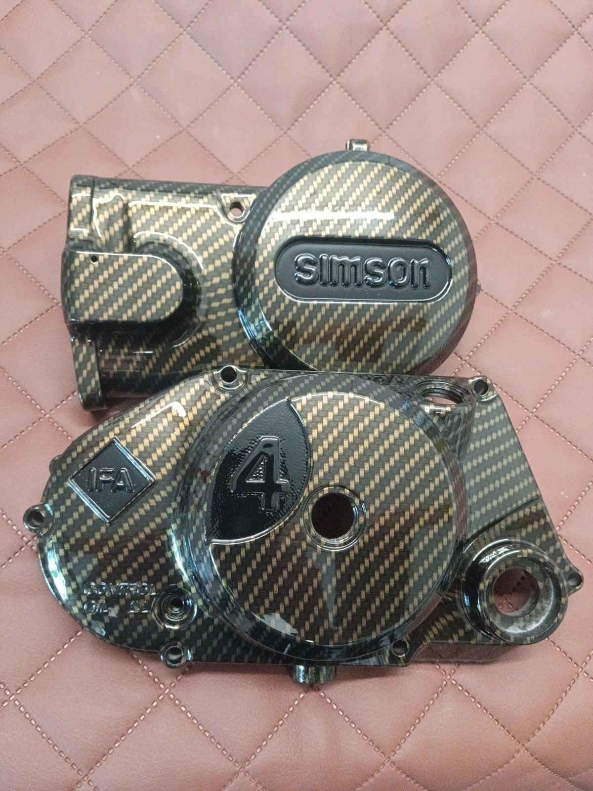 Simson Motordeckel in Carbon Design beschichtet und ordentlich Klarlackiert. Passend an allen Baujahren außers50. Auch passend an den neuen Schwalbenmodellen kr2