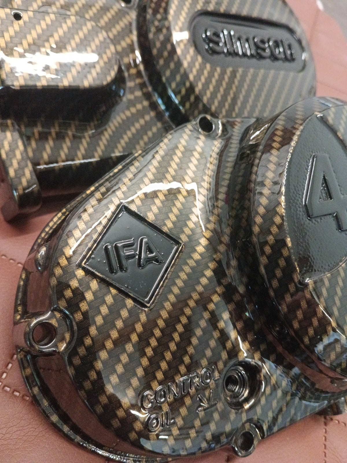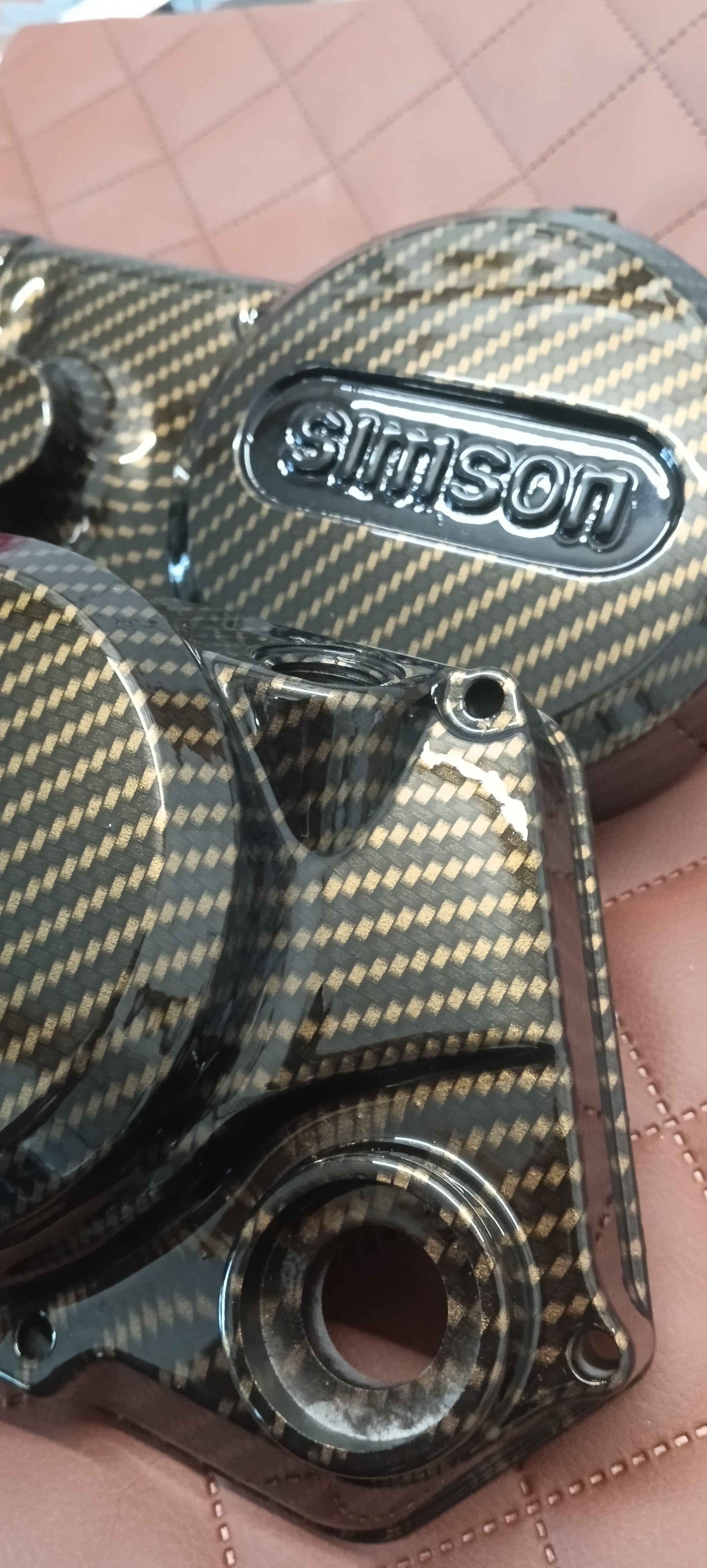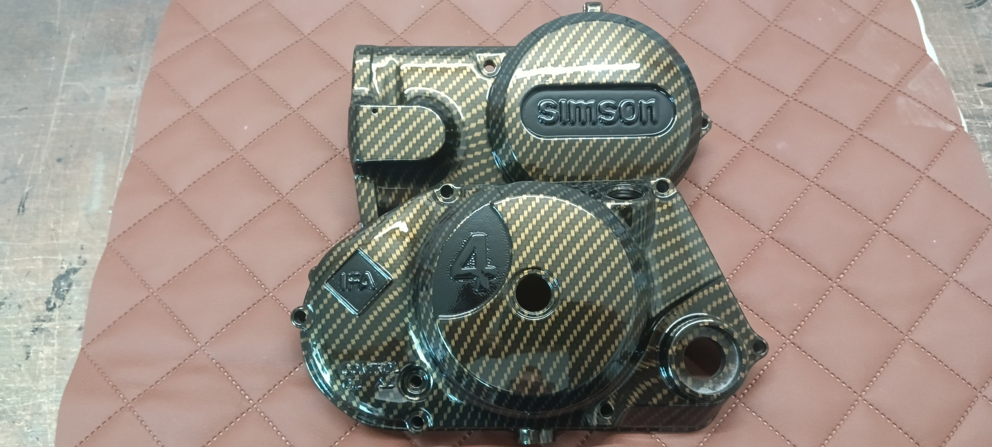 Simson Motordeckel in Carbon Design beschichtet und ordentlich Klarlackiert. Passend an allen Baujahren außers50. Auch passend an den neuen Schwalbenmodellen kr2