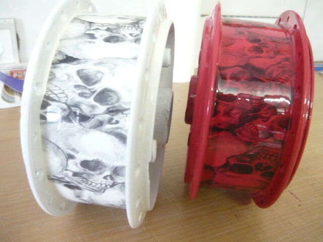 Simson Radnabe in Rot Weiß Totenkopfoptik