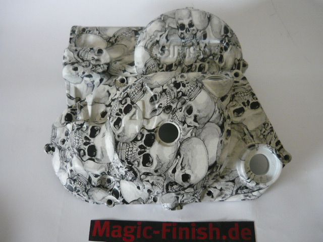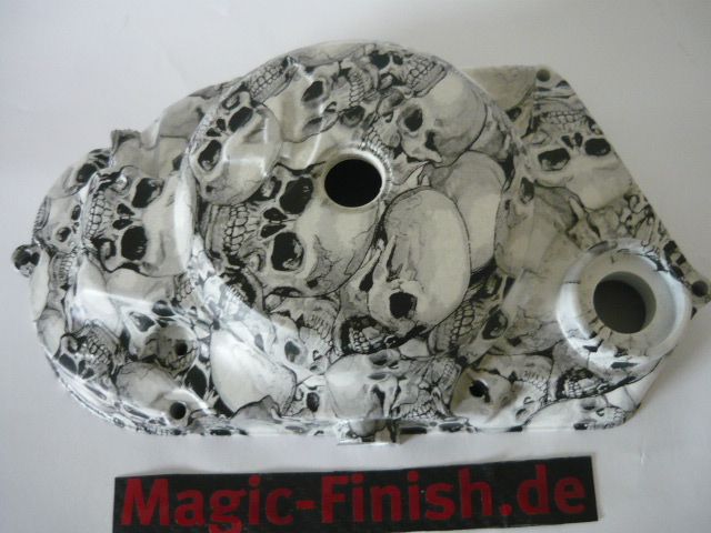 Simson Motorendeckel Kupplungsdeckel in Weiß Totenkopfoptik