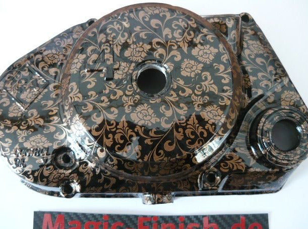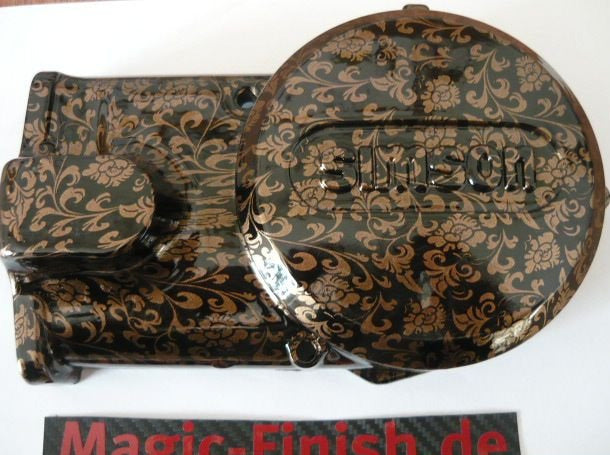 Simson Motorendeckel Kupplungsdeckel in glänzender Goldblumenoptik