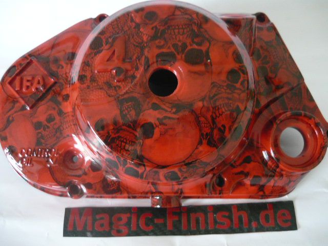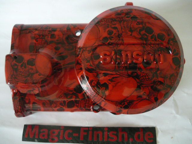 Simson Motorendeckel Kupplungsdeckel in Rot Totenkopfoptik